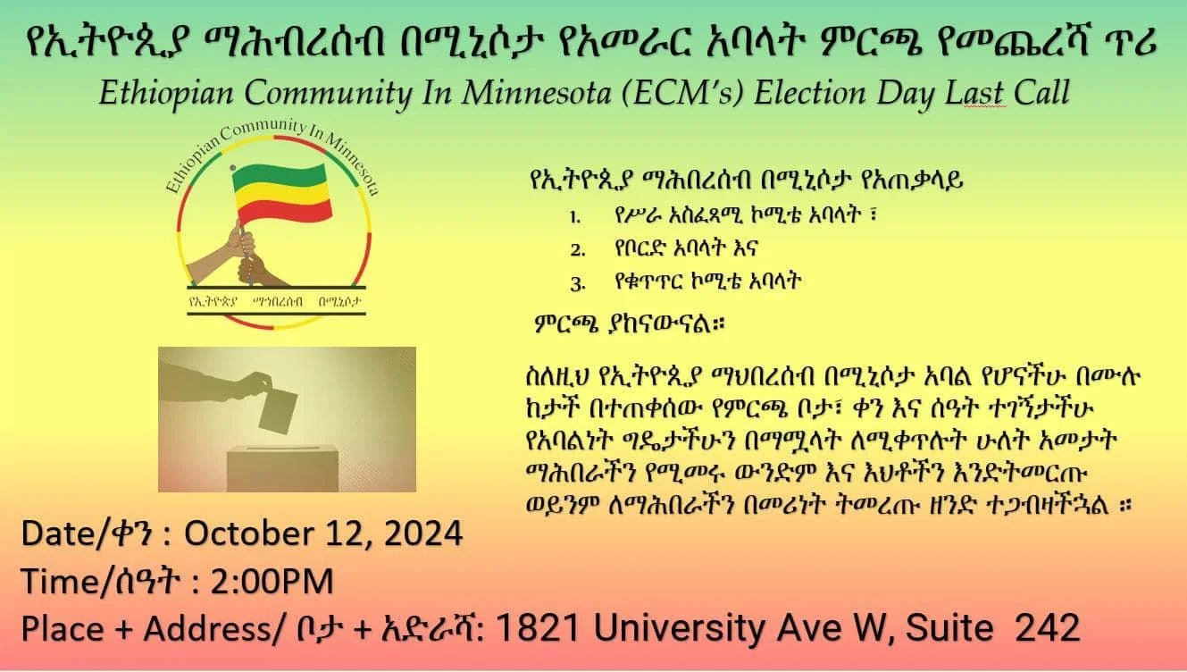 Ethiopia Community General Election Saturday, October 12,2024 Oct 11 Written By Daniel Gobeze Daniel Gobeze